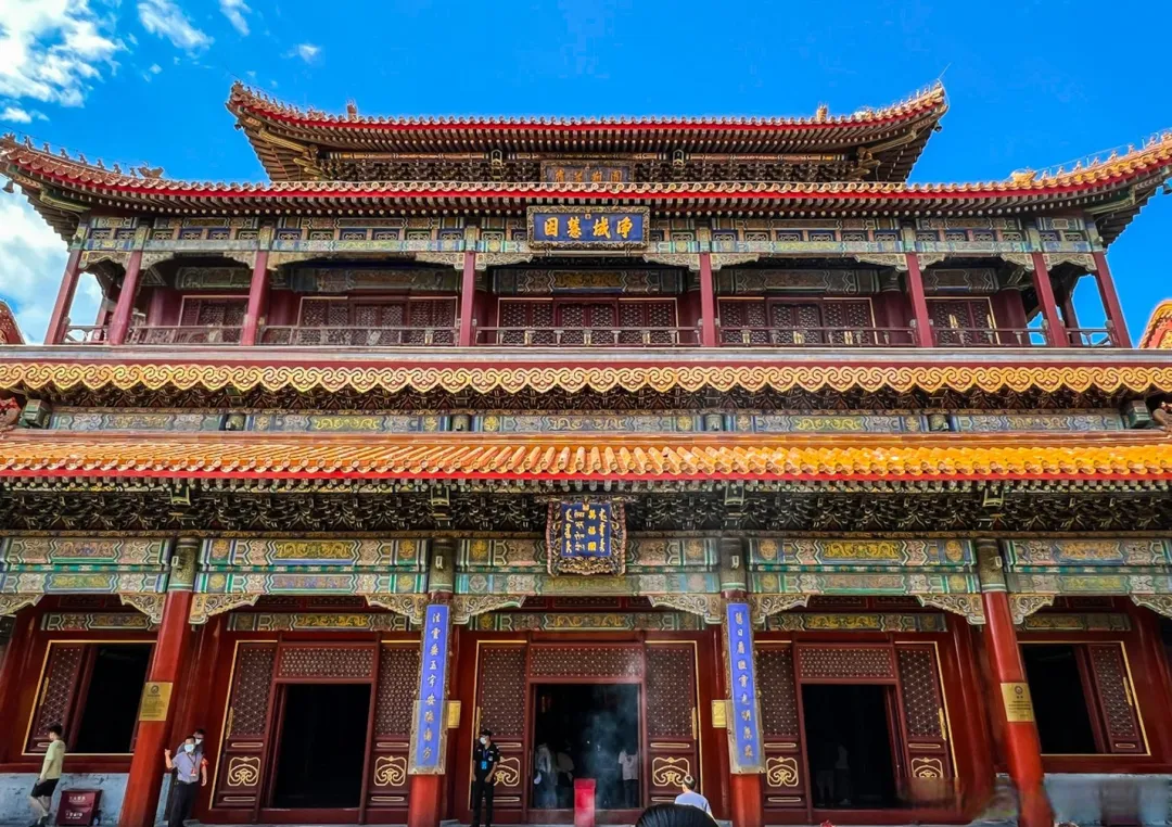 特色:一座著名藏传佛教寺院,雍和宫始建于清康熙三十三年(1694年),最初是康熙帝为四子胤禛(即后来的雍正帝)建造的府邸,称为雍亲王府。乾隆九年(1744年),雍和宫被改为喇嘛庙,成为清政府掌管全国藏传佛教事务的中心。雍和宫的建筑风格独特,融汉、满、蒙、藏等各民族建筑艺术于一体,是中华民族文化艺术的瑰宝。