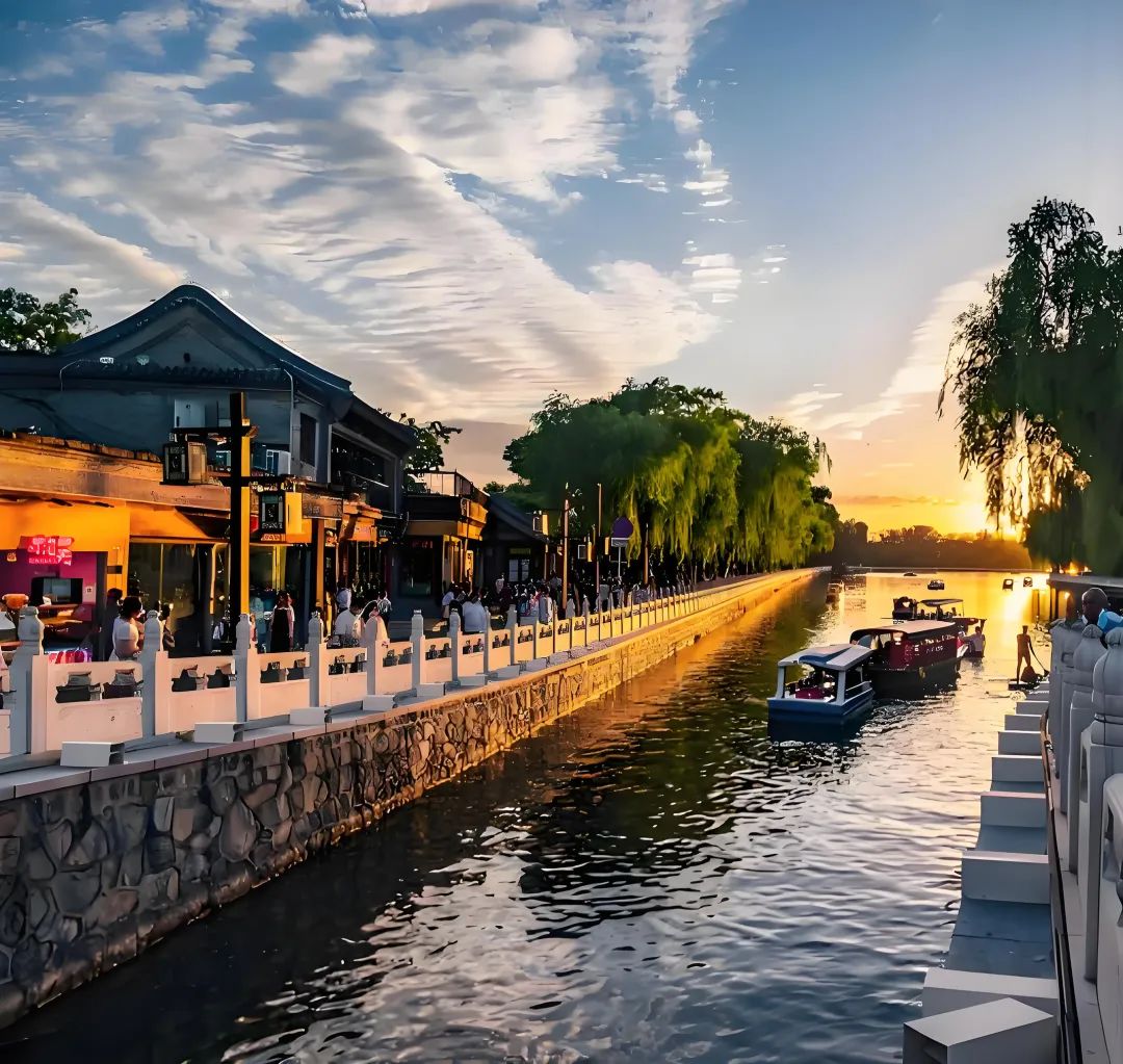 银锭桥:什刹海的标志性建筑,站在桥上可以看到“银锭观山”的美景。特别是日落时分,金色的余晖洒在湖面上,超级出片。