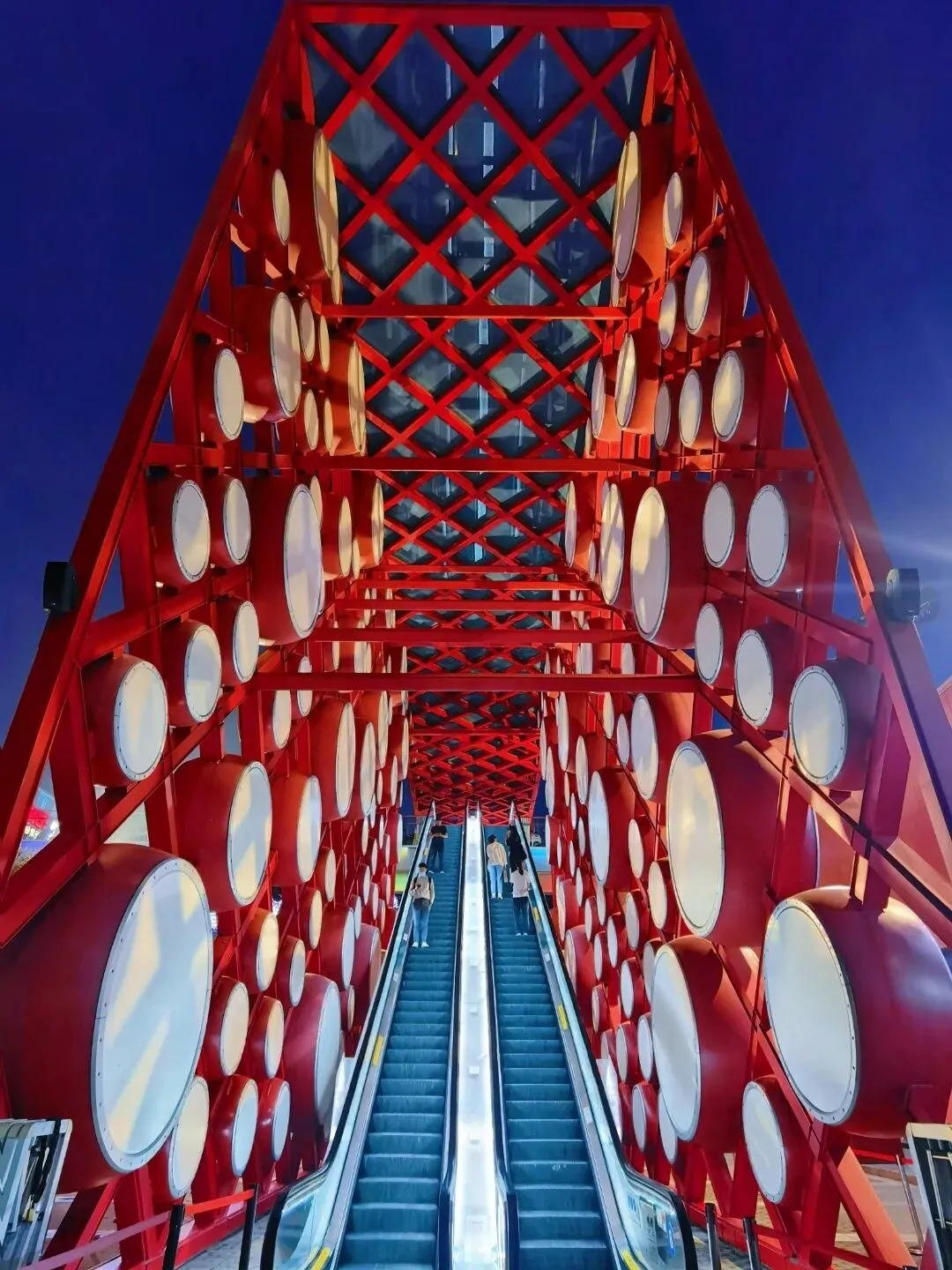 保留原718联合厂的包豪斯风格建筑,斑驳红砖、交错管道、历史标语与现代艺术装置形成强烈对比,成为天然摄影取景地。