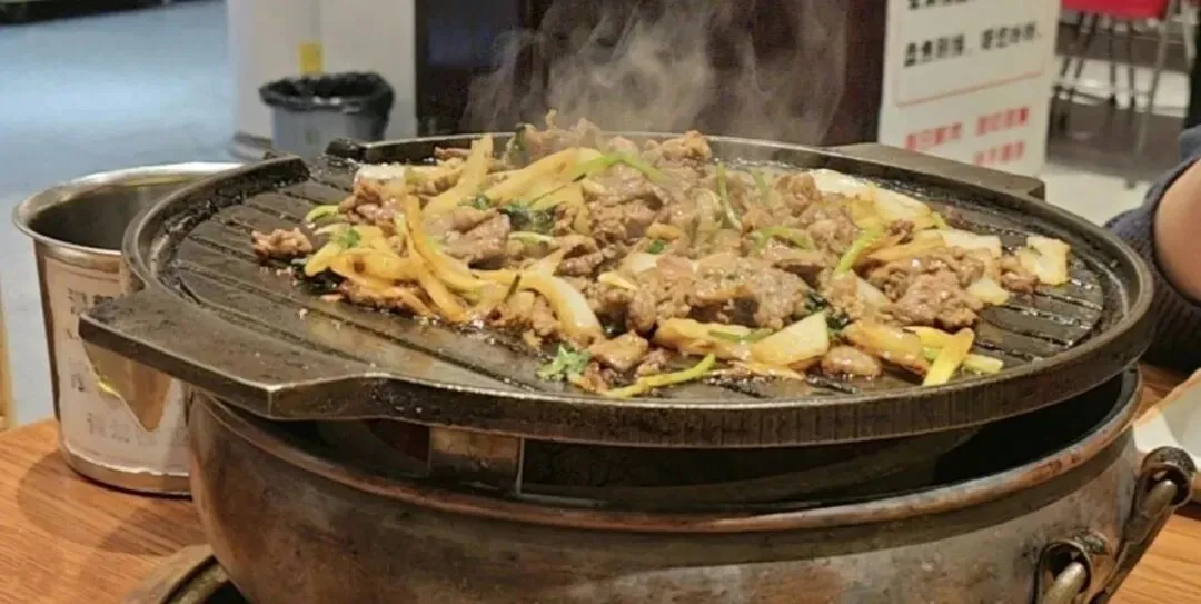8、炙子烤肉:用炭火和炙子烤制羊肉、牛肉等,油肉水分滴落炭火产生烟熏香气,搭配葱和调料腌制,肉质醇厚香浓。