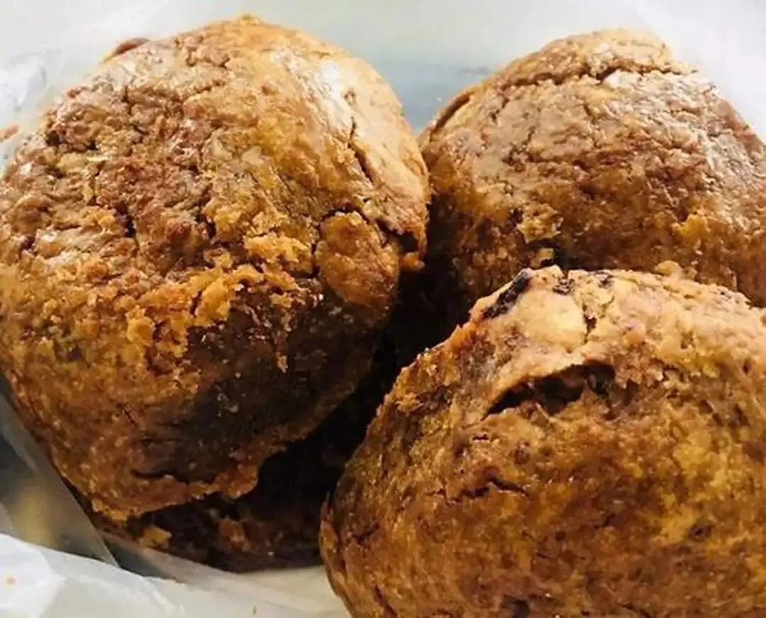 10、糖火烧:用缸作炉子烤制,色泽焦黄,表皮酥脆,内瓤层次分明,绵软不粘,香甜可口。