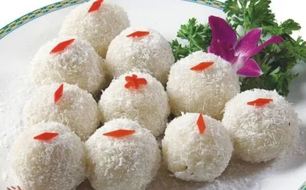 11、艾窝窝:历史悠久,外皮用蒸熟的糯米制成,内馅包含核桃仁、芝麻、瓜子仁等,色泽雪白,质地粘软,口味香甜。