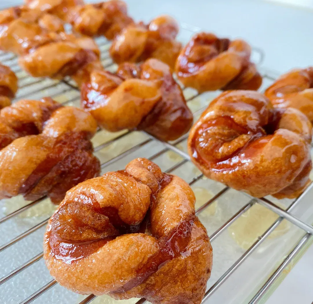 13、糖耳朵(蜜麻花):因其形状酷似耳朵而得名,色泽棕黄油亮,质地绵润松软,味道甜蜜可口。制作时需经过发酵、炸制、蜜糖涂抹等工序。