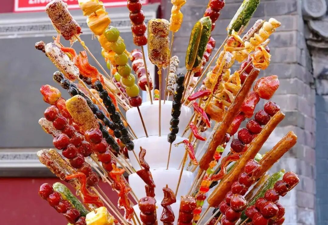 2)王府井大街:除了购物,这里的东来顺(涮羊肉)、王府井小吃街(汇集各地小吃)也很有名。你可以品尝到老北京风味的炒肝、爆肚儿、豆腐脑、冰糖葫芦,甚至挑战一下炸蝎子、昆虫等重口味食品。