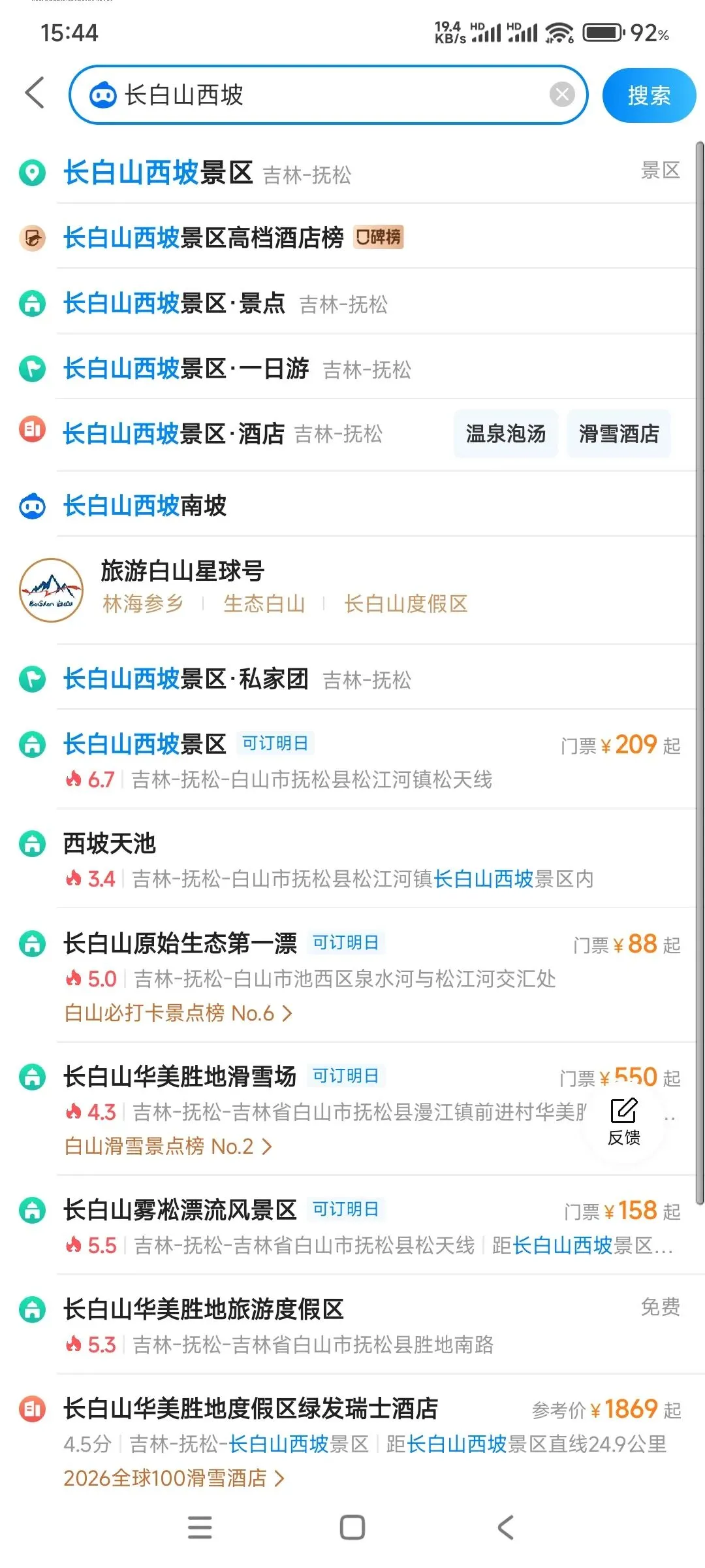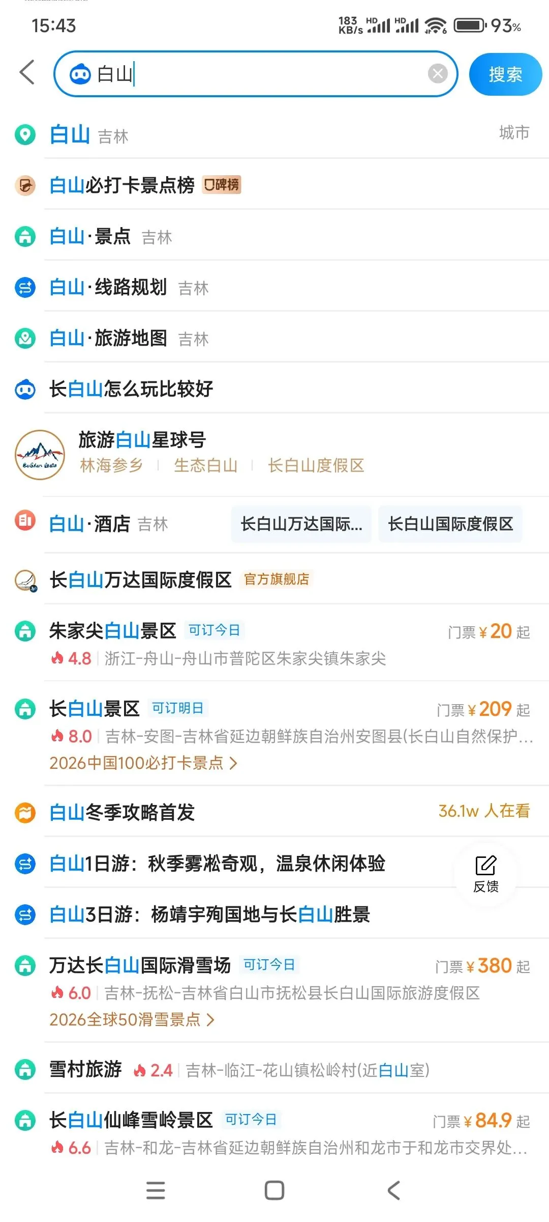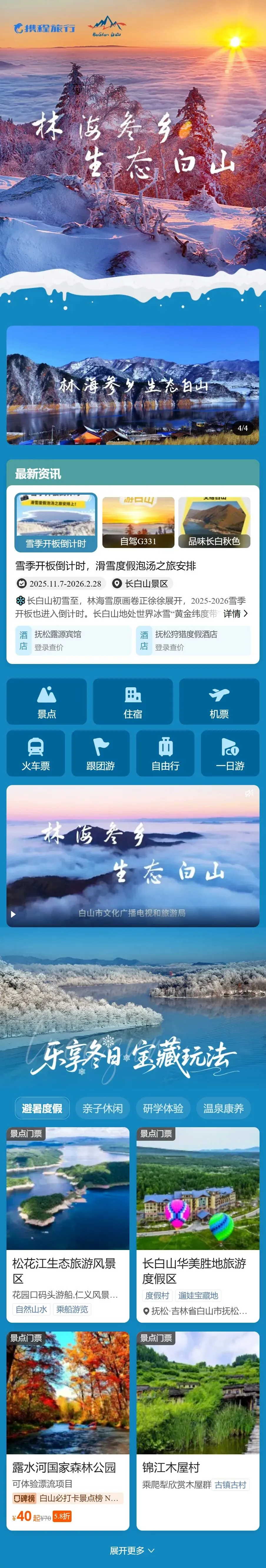 “旅游白山星球号”作为携程平台打造的综合性旅游目的地门户,深度整合长白山地区全域旅游资源,覆盖景点门票、特色住宿(高端度假酒店/生态民宿)、机票火车票预订、跟团游/自由行/一日游等全品类服务,用户可通过星球号实现“一键比价、智能规划、无忧预订”。