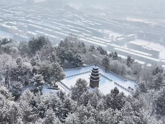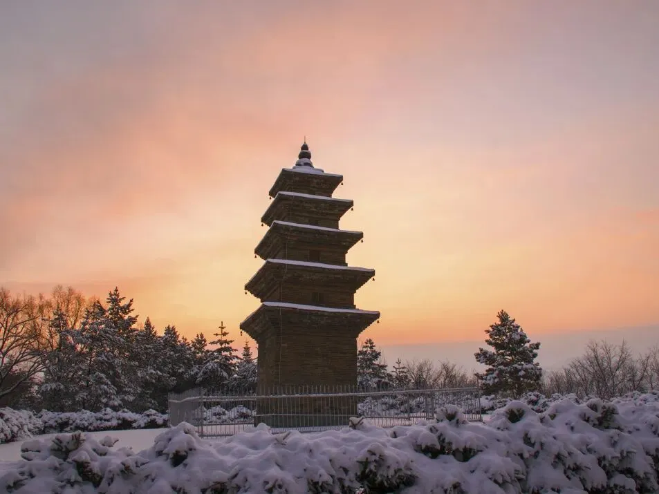 攀登塔山公园,长白边境的壮丽风光尽收眼底,历史与自然在此完美交融。若逢落日时分,金辉洒落雪原,将大地染成蜜糖色,灵光塔更添几分温暖与厚重,让人沉醉于这片土地的悠悠过往。