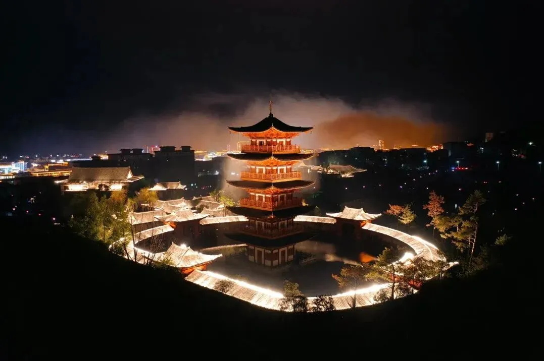 漫步传统市集,烟火气十足。更有悬崖主题乐园,玻璃廊桥、峭壁秋千等六大高空项目,带来极致刺激体验;在千年崖城景区,你还能亲手参与打糕、辣白菜等非遗项目制作,感受传统技艺魅力。夜幕降临,灯光秀点亮京祜塔与古建筑群,光影交织间,仿佛穿越千年,是长白山区不可错过的沉浸式文旅打卡地。