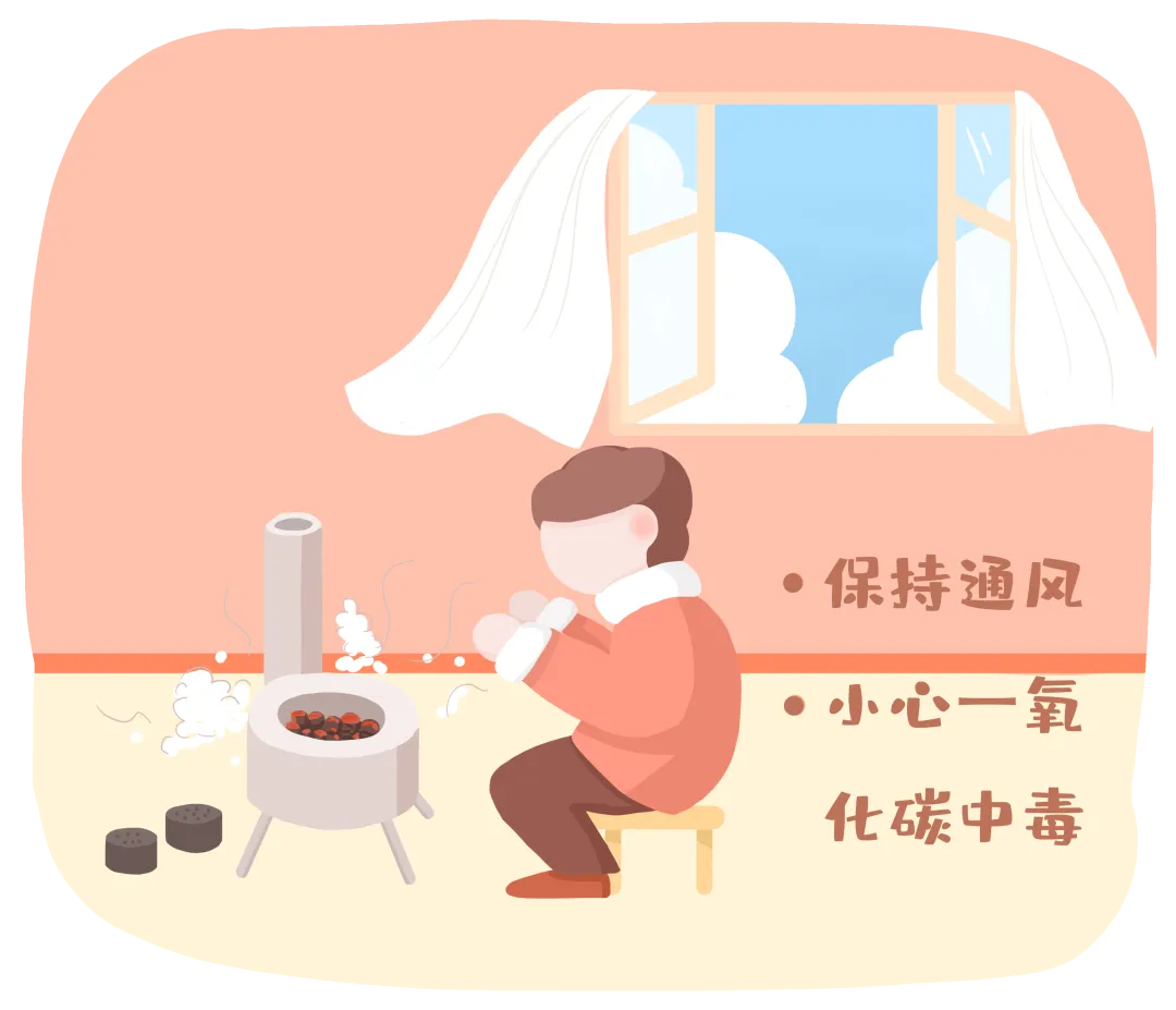 正确使用煤炉、炭火、热水器、煤气等设备,使用时开窗通风换气,保持室内空气新鲜。