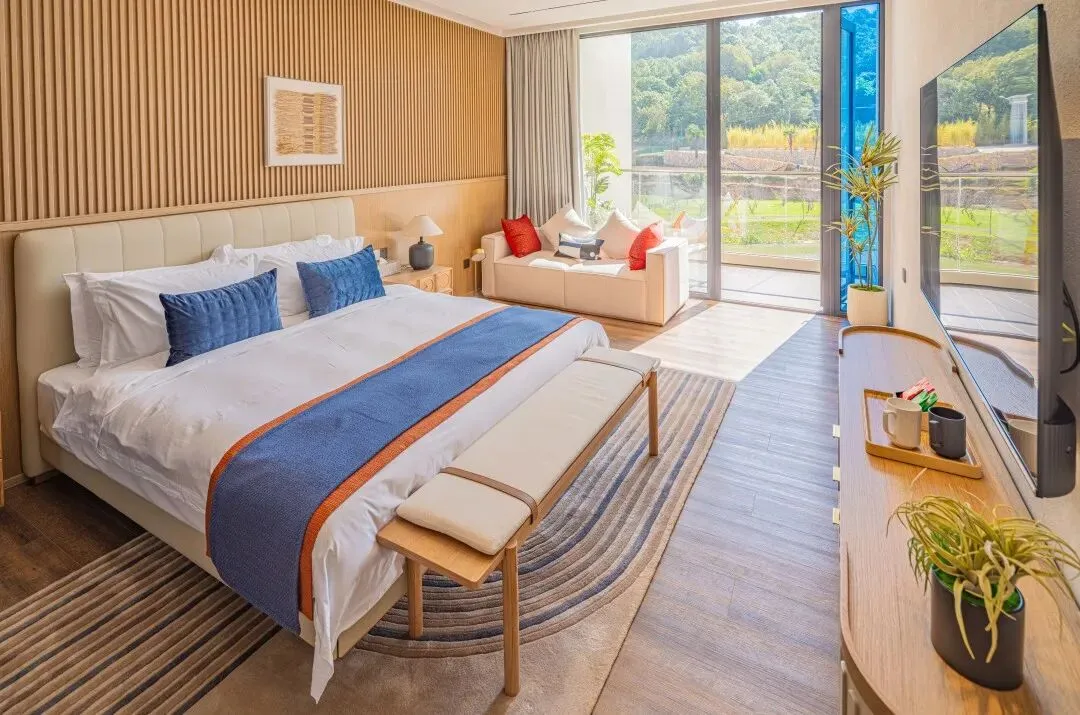 暖色调的客房设计温馨雅致,让人感受到“家”一样的温馨。推窗映入眼帘的或是田园,或是花海。没有城市的喧嚣,只有依山靠湖的宁静,是“乡野云游”最理想的身心归所。