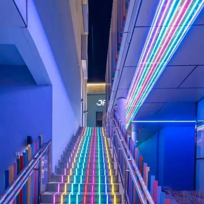 昔日杂乱的空地变身绿意盎然的大草坪,各类特色活动如泼水节、篝火晚会在这里燃情上演,活力盎然。充满设计感的“观山坊”和特色餐厅,既融入现代化的设备设施,也保留了传统云南特色风味的乡土记忆。别具一格的色彩与灯光设计,不仅充分展示了“七彩云南”的特色,提升了颜值与品质,还荣获了美国IDA国际设计大奖金奖。