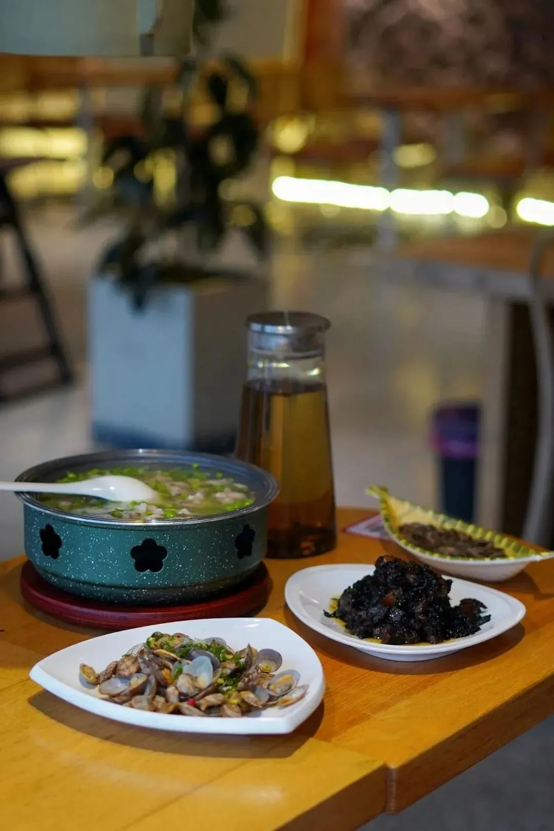 自在通透的餐厅环境,桌上精心搭配的绿植,山中野味加上山中野趣,给用餐体验增添了一份专属的仪式感。