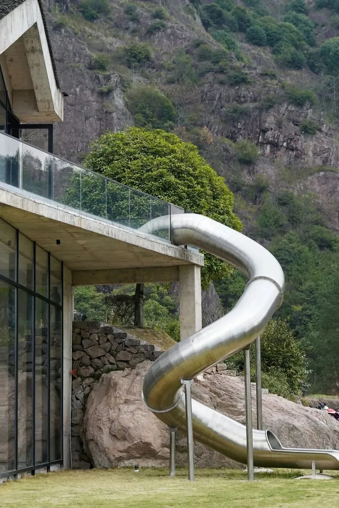 没有孩子能够拒绝二楼书吧外的滑滑梯,