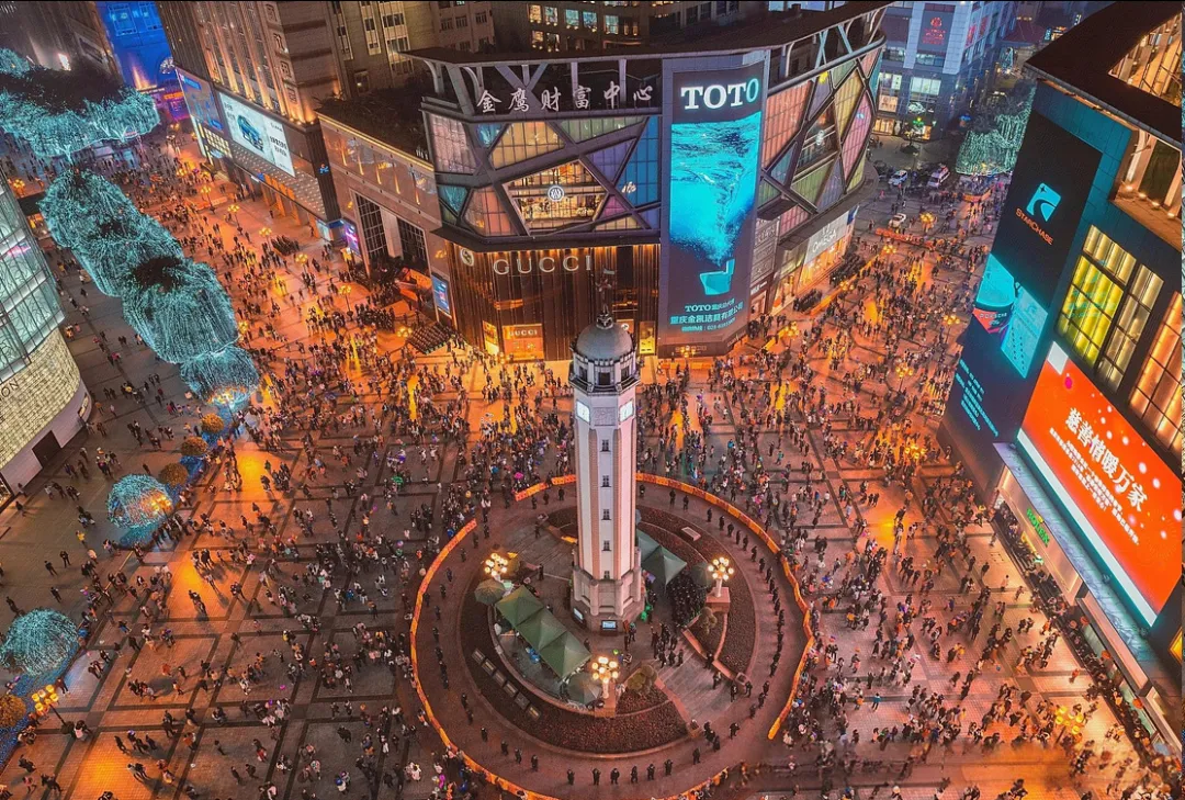 特色:重庆最具代表性的商业中心和地标之一,也是一个集历史、购物、美食和观光于一体的繁华区域。它的核心是人民解放纪念碑(简称解放碑),这是全国唯一一座纪念中华民族抗日战争胜利的国家纪念碑,是抗战胜利和重庆解放的历史见证。如今的解放碑步行街已成为重庆CBD的核心组成部分,被誉为"中国西部第一街"。