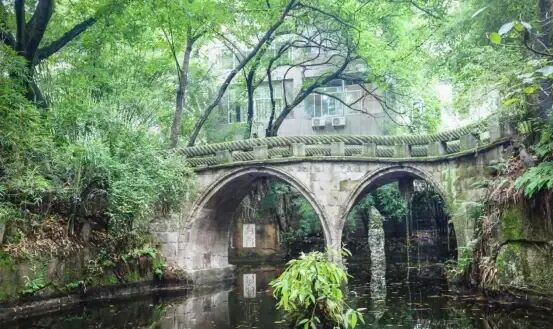 石绳桥:S形石桥,石护栏外形像两根粗大弯曲的绳子,是鹅岭公园的标志性景点之一。桥下有两个不同方位的八字形石拱,设计巧妙。