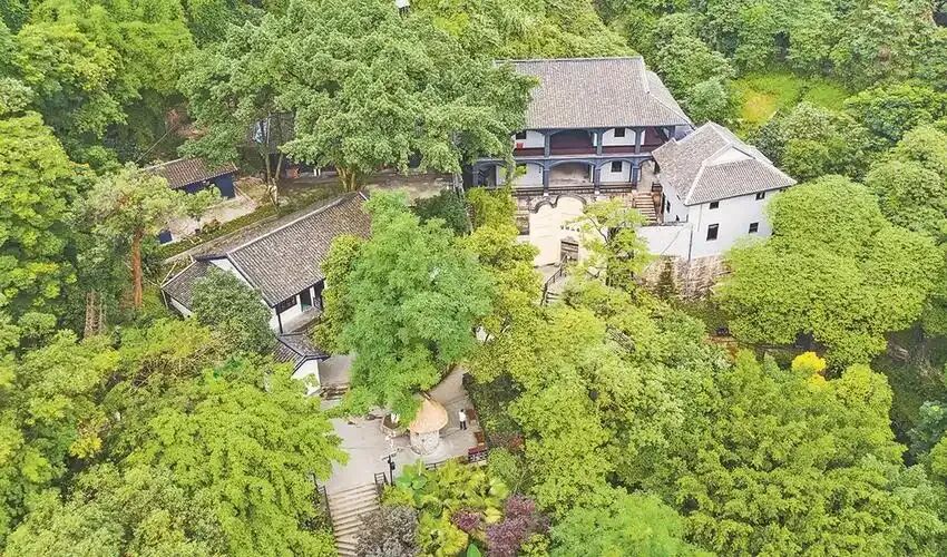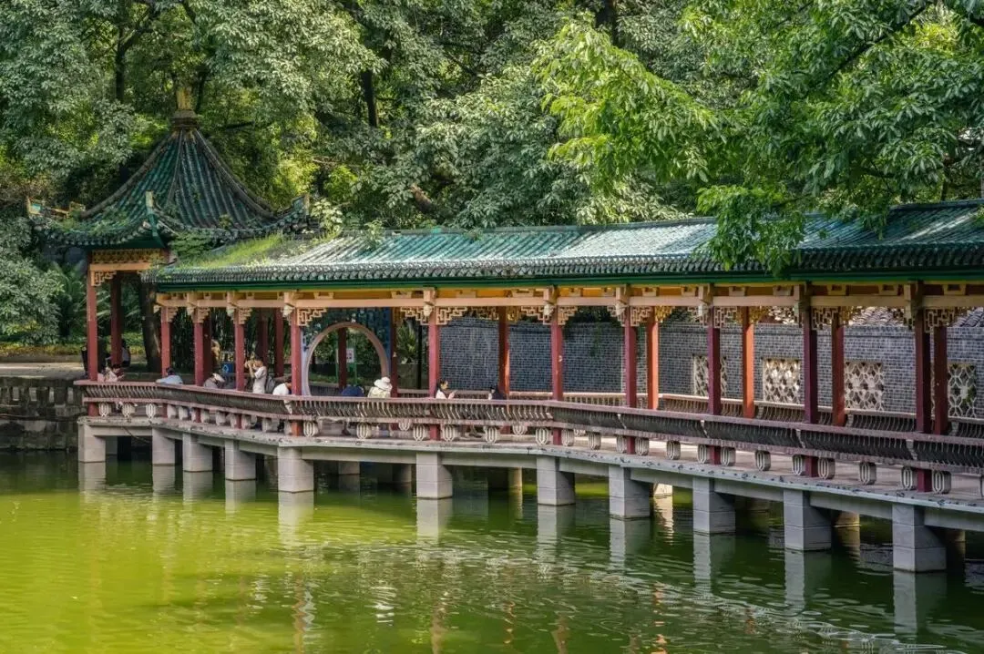 鹅项山庄:位于公园西南端,融合了中西建筑风格,朱墙黛瓦被绿树环绕,充满复古氛围。主要景点包括鹅岭当代国学会馆、庭、台、楼、榭等。