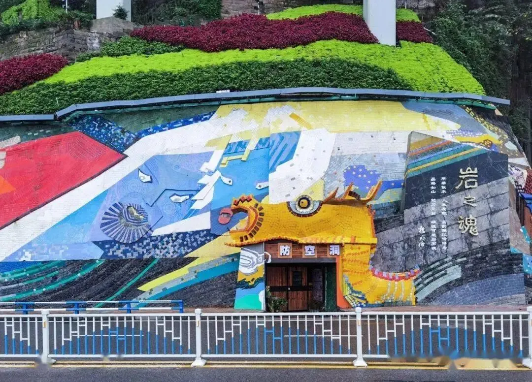 特色文化墙"岩之魂":在观景平台附近,别忘了欣赏由著名美术家江碧波创作的大型浮雕作品——"岩之魂"。它展现了重庆独特的巴渝文化,其创作灵感源于现场的岩石形态,生动展示了人与土地的关系,为这个网红景点增添了文化底蕴。