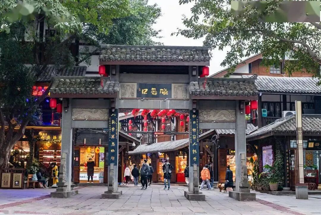 黄桷坪牌坊:古镇标志性入口,青瓦红墙搭配红灯笼,穿汉服站石阶上可拍出电影感大片。