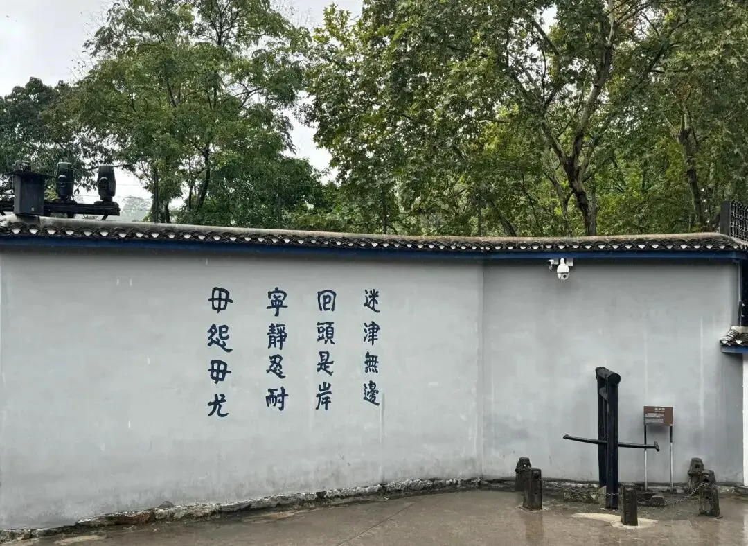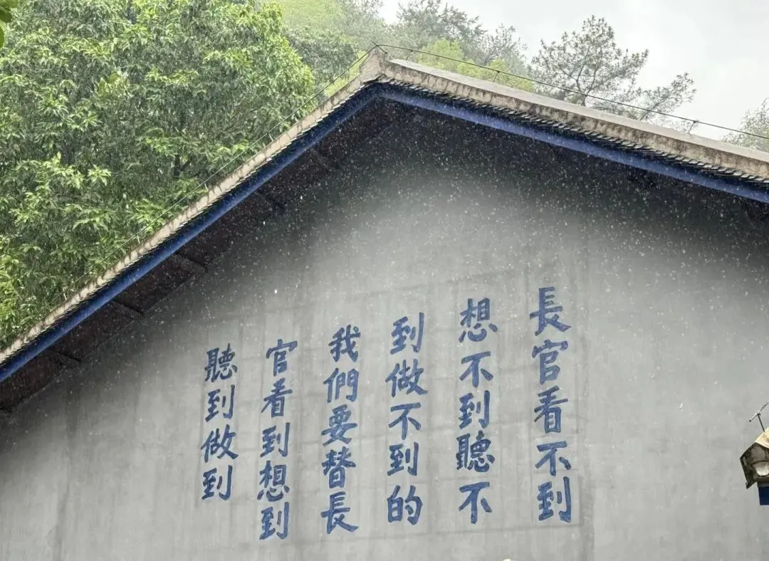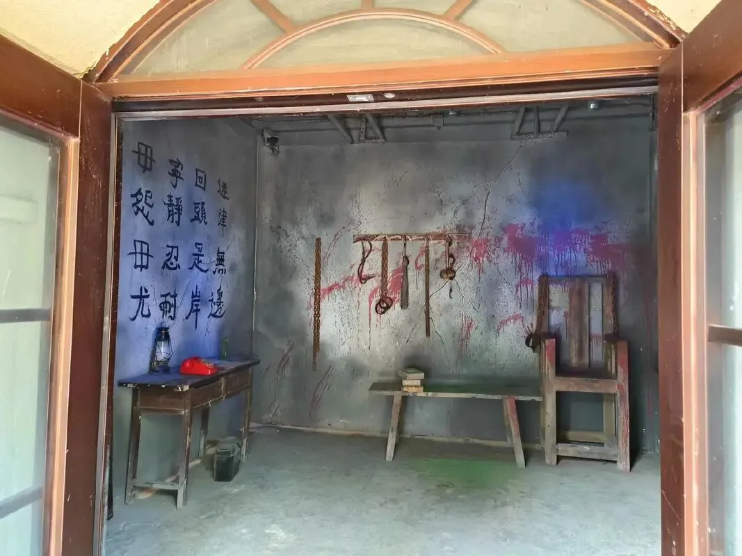 标语墙:院内墙上写有“进思尽忠,退思补过”“正其谊不谋其利,明其道不计其功”等标语,反映了军统特务对革命者的思想控制。