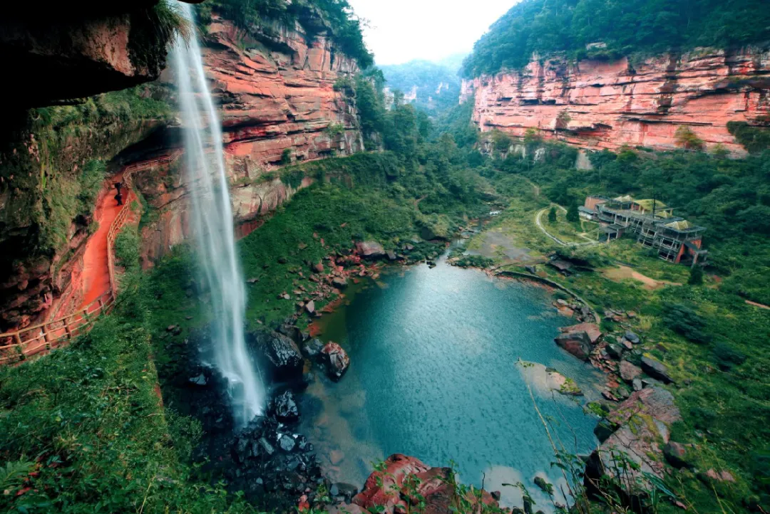 特色:重庆最具代表性的地标之一,以其独特的吊脚楼建筑和璀璨的夜景闻名,被称为现实版的《千与千寻》。洪崖洞原名洪崖门,是古重庆十七座城门之一,拥有2300多年的历史。它最初是军事要塞和通商口岸,见证了重庆的码头文化和山城变迁。洪崖洞的建筑最大的特色是其“立体空中步行街”的设计。它共有11层,但却有“一楼进、十一楼出”的神奇体验——从嘉陵江滨江路的“1楼”进入,乘坐电梯到“11楼”走出,外面竟然是解放碑方向的平街马路。这种魔幻感源于重庆山城独特的地形高差。