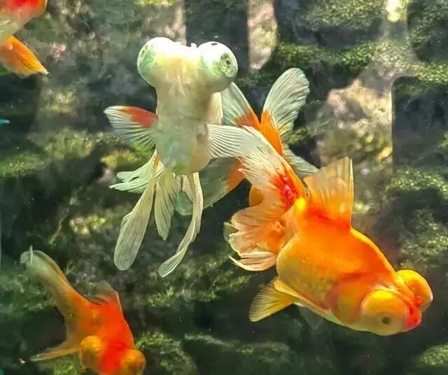 金鱼馆:别致的设计、精巧的布局、秀美的景观,使整个庭院清雅静幽,这里有30多种金鱼。