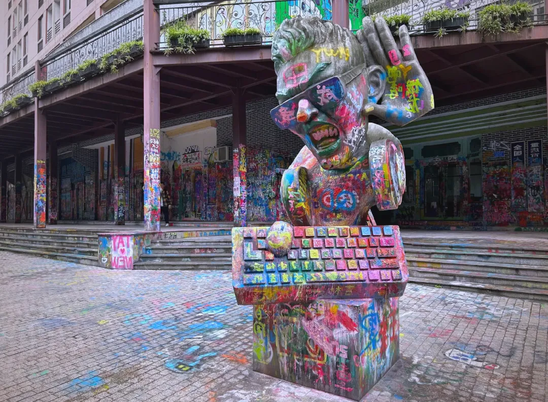 易烊千玺雕像:在涂鸦街末尾有一个易烊千玺雕像,这是根据电影《少年的你》中的动作制作的,是粉丝们必去的打卡点。