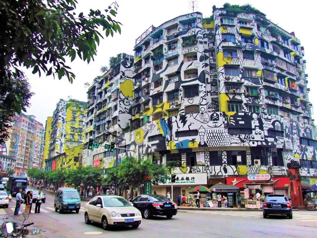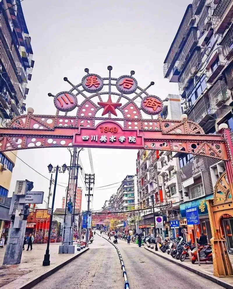 交通茶馆:混在涂鸦街里的1987年老茶馆,木梁上悬着蜂窝煤熏黑的吊扇。穿香奈儿的策展人和赤膊的棒棒军共享一壶沱茶,川美教授在八仙桌上给学生改作业,充满市井气息。
