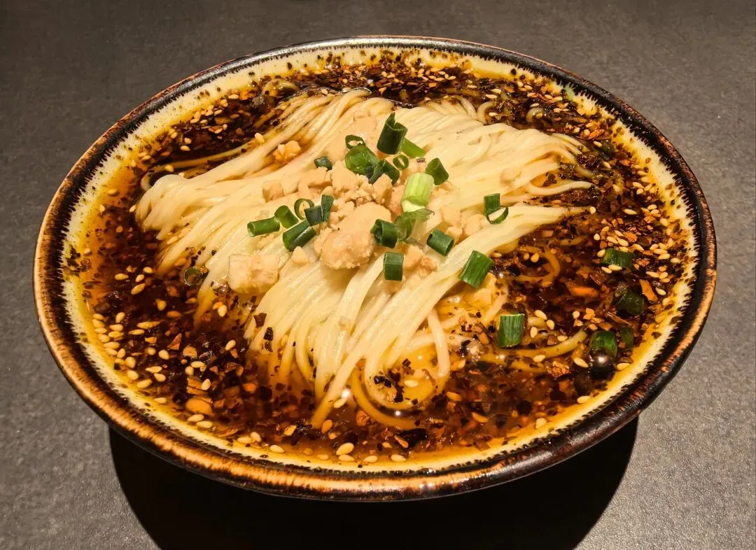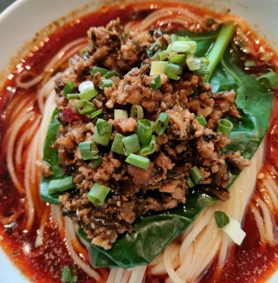 24、担担面:重庆的风味小吃,据说历史已有150多年,面条细薄,卤汁酥香,咸鲜微辣,香气扑鼻。