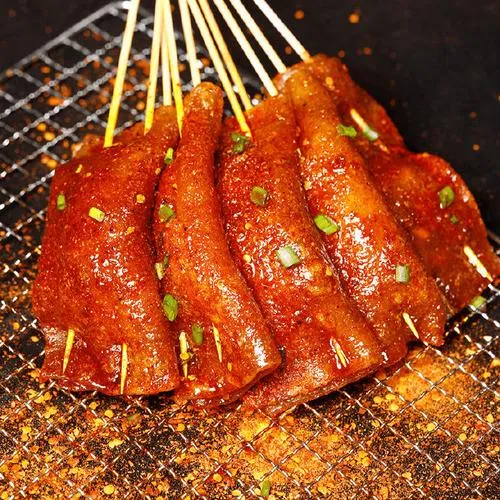 7、烤苕皮:夜市明星,苕皮烤至起泡,裹酸萝卜、葱花、折耳根,糯叽叽带嚼劲。