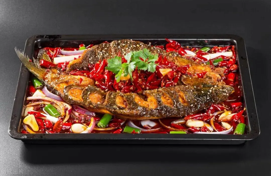 8、万州烤鱼:将腌、烤、炖三种技艺融为一体,鱼肉经腌制吸满香料味,烤制后鱼皮酥脆、肉质鲜嫩,再搭配辣椒、花椒等调料炖煮,口感鲜香麻辣。