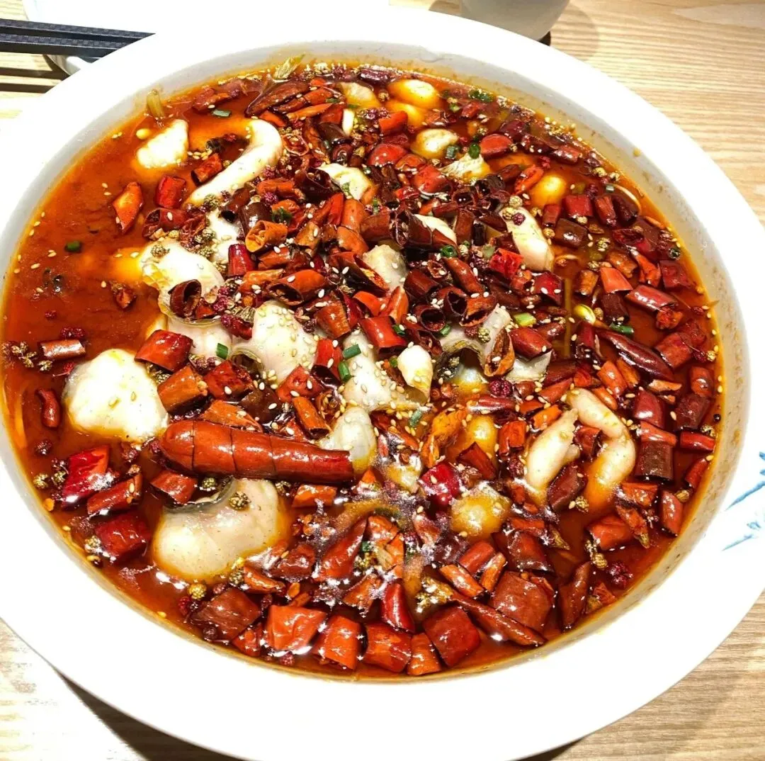 5、毛血旺:鸭血、毛肚、黄喉在红油中翻滚,以“烫嘴、烫心、烫魂”的麻辣感著称。