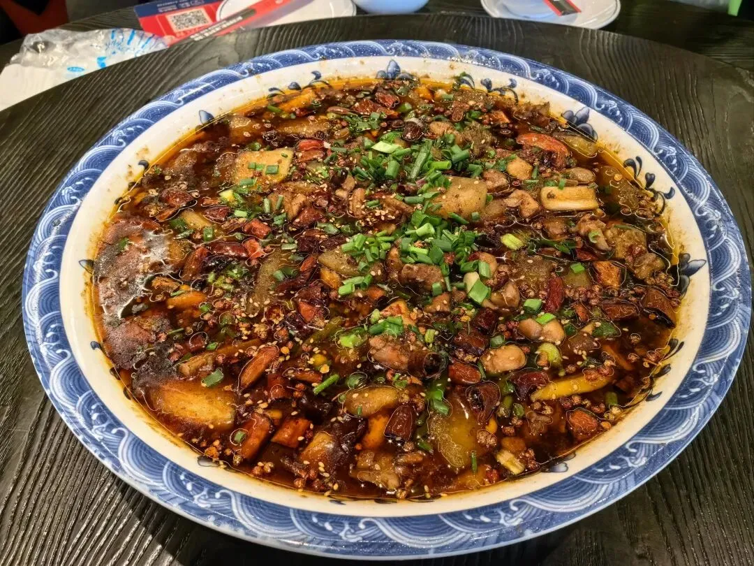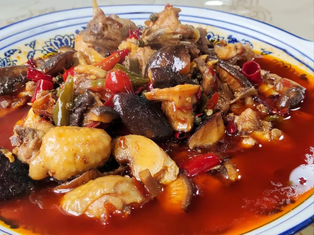11、南山泉水鸡:利用山泉水烹制鸡肉,加入辣椒、花椒等调料,使得鸡肉鲜嫩可口,麻辣味十足,还可一鸡三吃,满足不同口味需求。