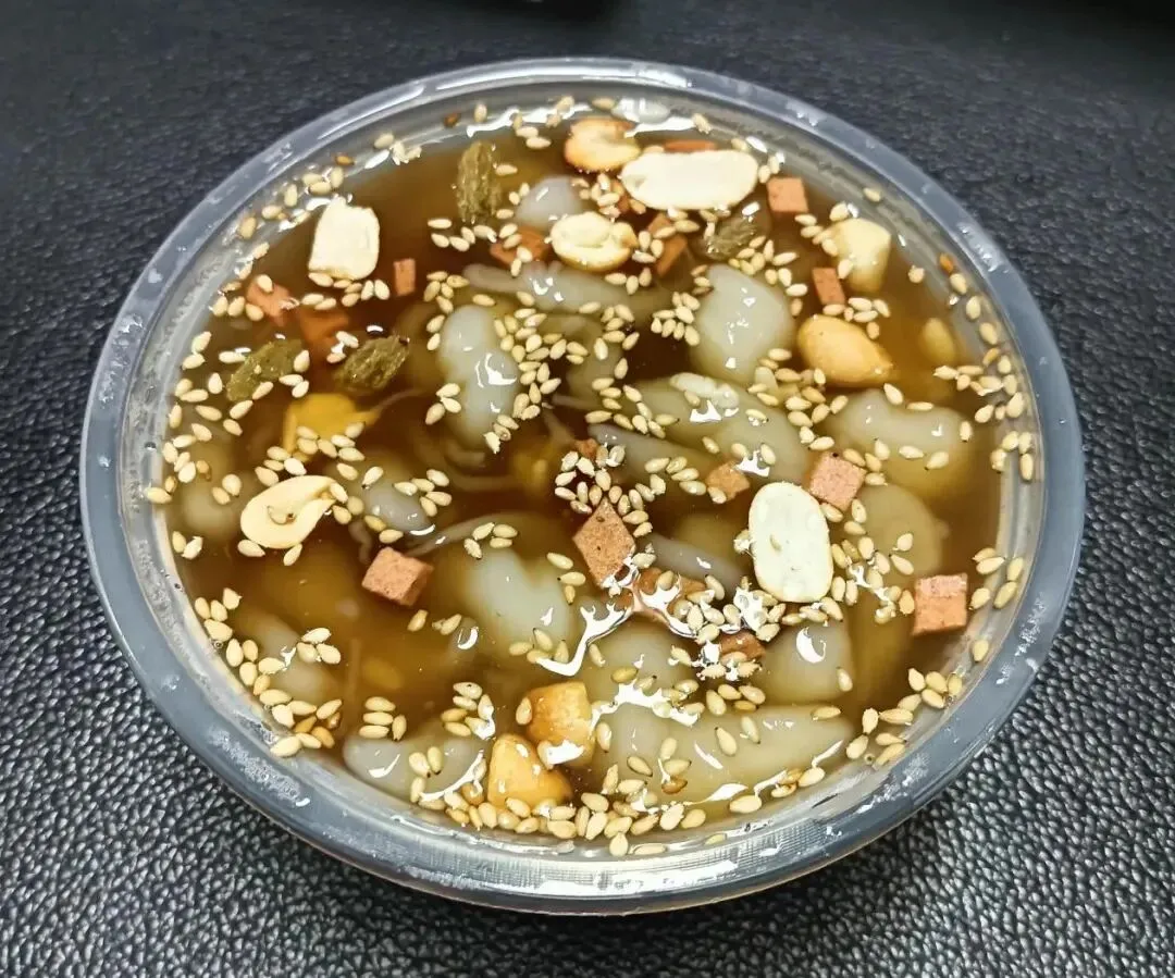 13、凉虾:由绿豆淀粉制成的滑嫩透明小球,搭配特制的红糖浆或花生碎,甜而不腻,清新解暑,口感独特。