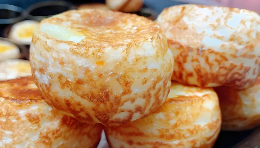 20、锅盔:外观酷似圆饼,表面金黄酥脆,内里松软,常搭配辣椒粉或腌菜,风味独特,令人垂涎。