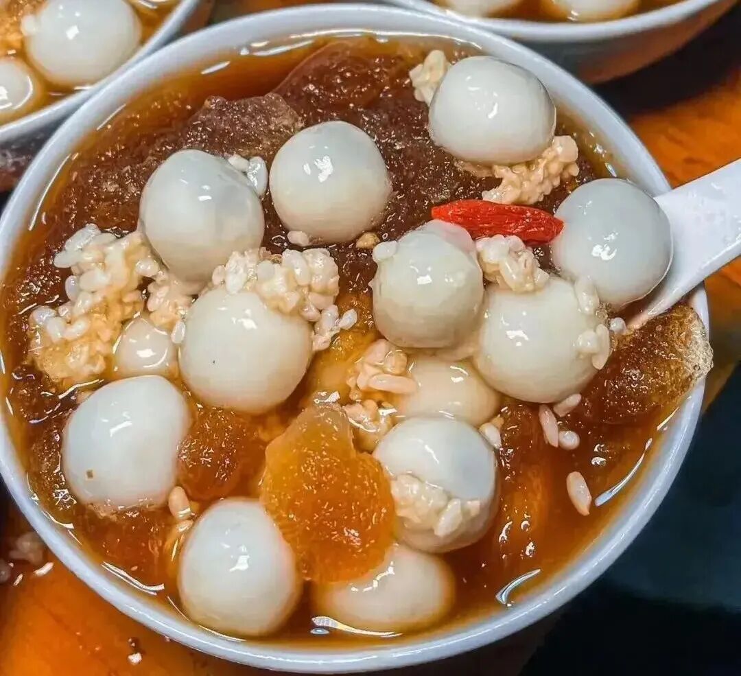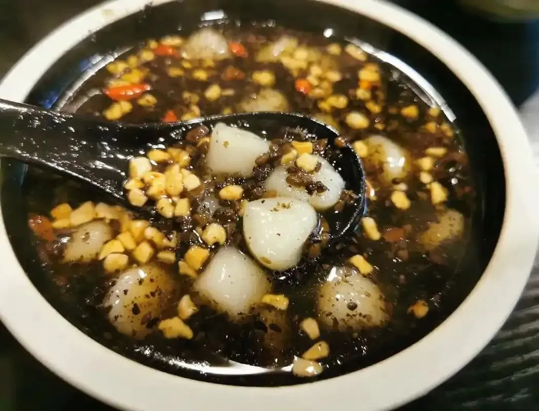 27、山城小汤圆:芝麻馅甜而不腻,醪糟汤底带酒香,常作为火锅解辣神器。