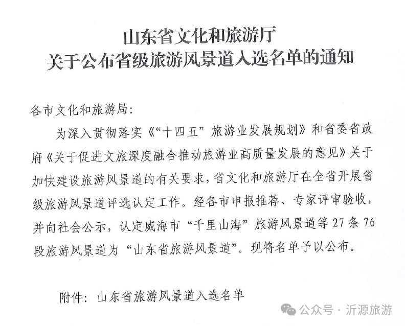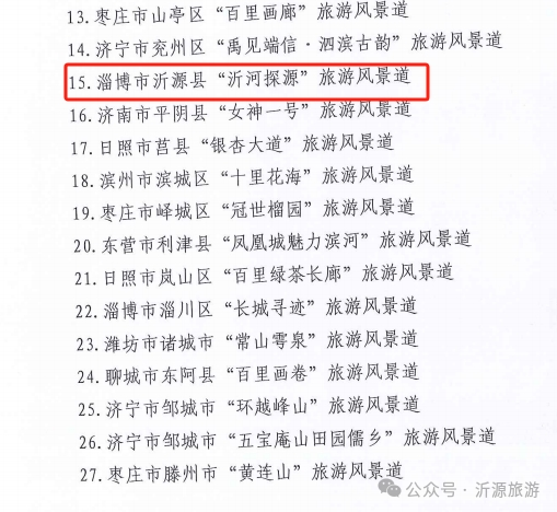 近日,山东省文化和旅游厅公布省级旅游风景道名单,我县“沂河探源”旅游风景道入选。