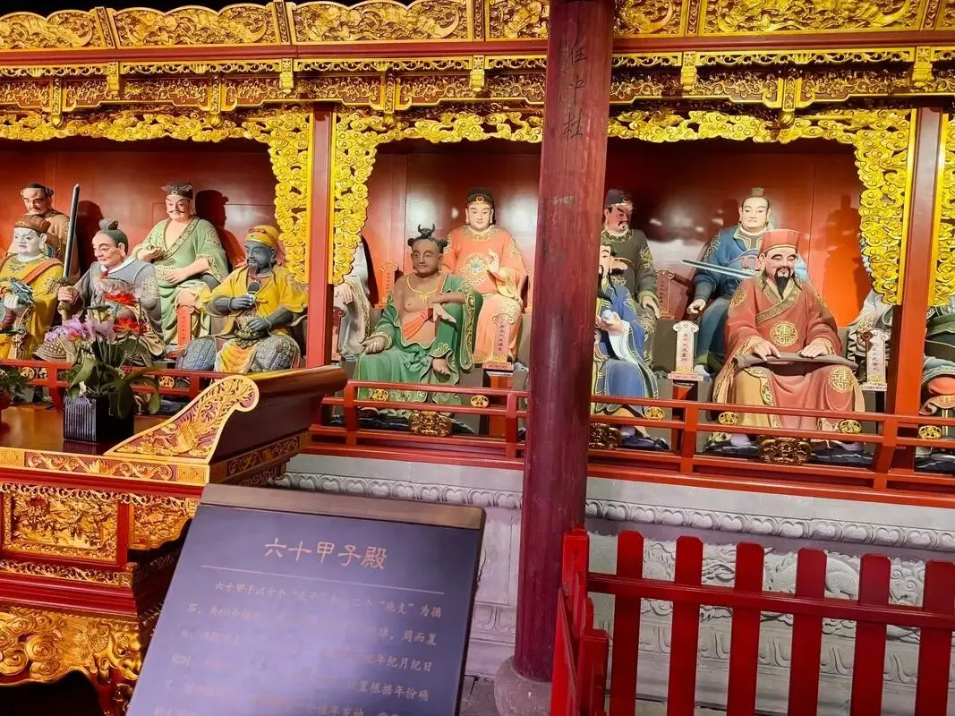 元辰殿(六十甲子殿):殿内供奉六十元辰中所对应的太岁神。信徒可以在这个殿里礼拜本命太岁,祈求年年平安、吉祥如意。六十甲子是中国古代纪年的一种方式,以六十为一周,道教以此配以神名,形成了道教元辰信仰。