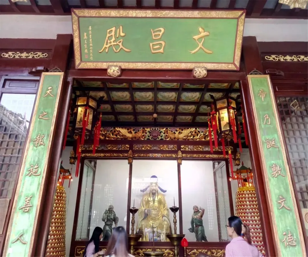 文昌殿:殿内供奉文昌帝君,左右二童子称天聋、地哑。文昌帝君是中国民间和道教尊奉的掌管士人功名禄位之神。