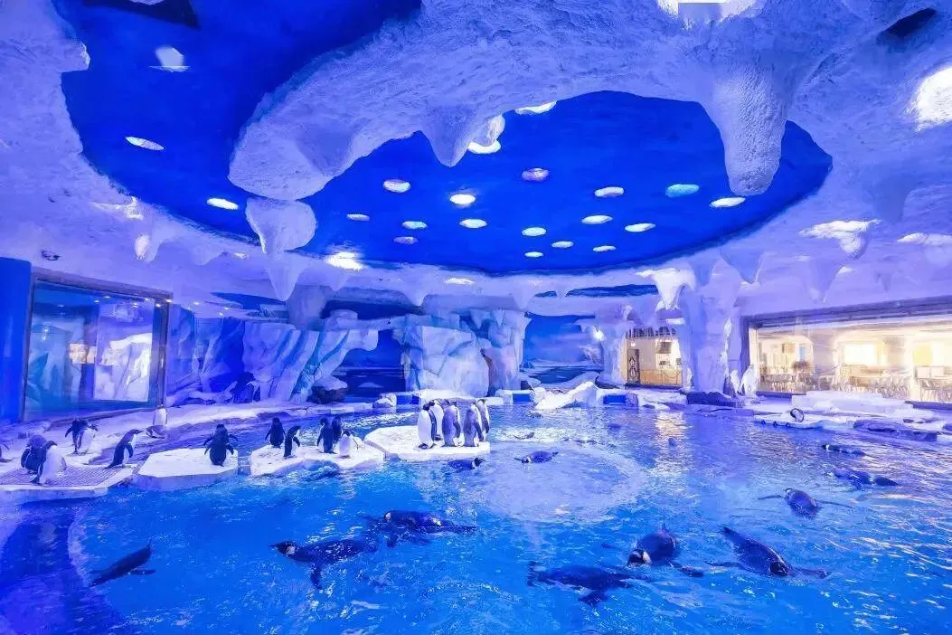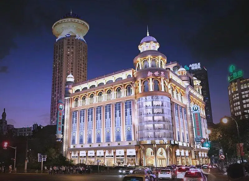新世界城:进门两侧保留了经典的旋转扶梯,中间是纽约中央火车站经典的“四面钟”造型,是网红打卡点。此外,新世界城的中庭还有目前世界最高的室内攀岩项目“新世界·天宇”,攀岩墙从3楼一直延伸到12楼,总高度达到55米。一楼北中庭的海洋水族馆是中国百货首家,宽3米,深3米,最大观景玻璃墙长达20米。6楼的溜冰场增加了冰壶、冰屋和冰吧等设施。