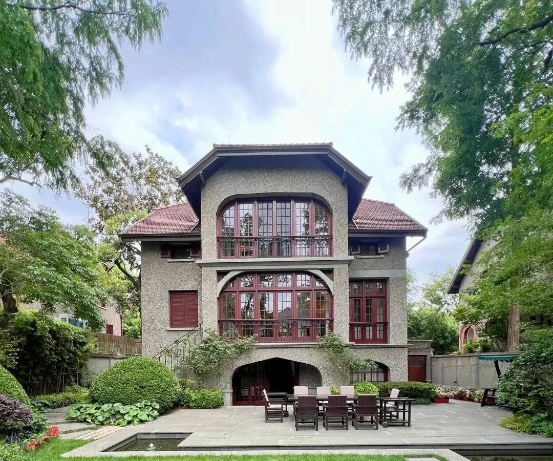 武康庭(武康路376号):新古典主义风格庭院,清水红砖外墙搭配喷泉绿植,是文艺片取景地。
