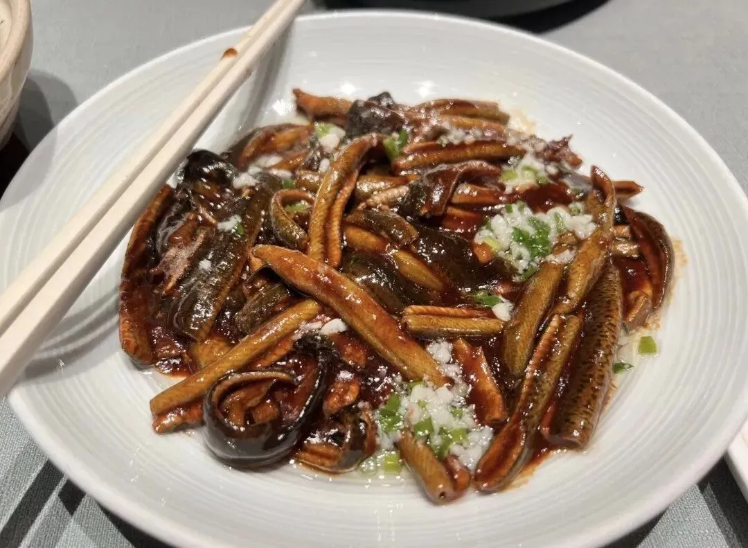 3、响油鳝丝:鳝丝切段,以葱姜蒜爆香,淋热油激发香气,口感滑嫩,鲜味十足。