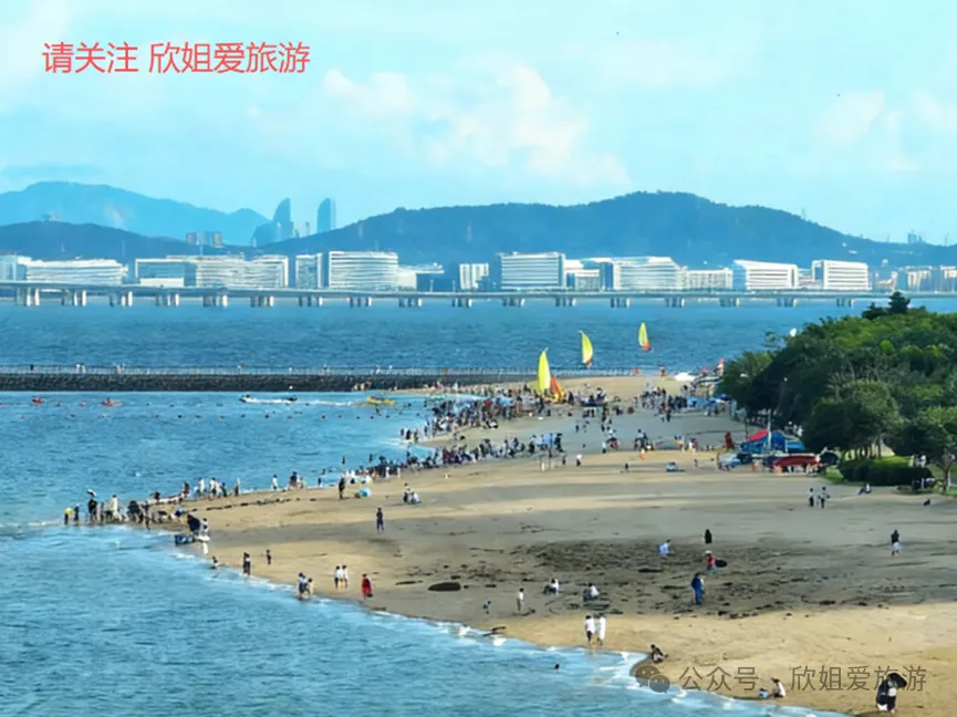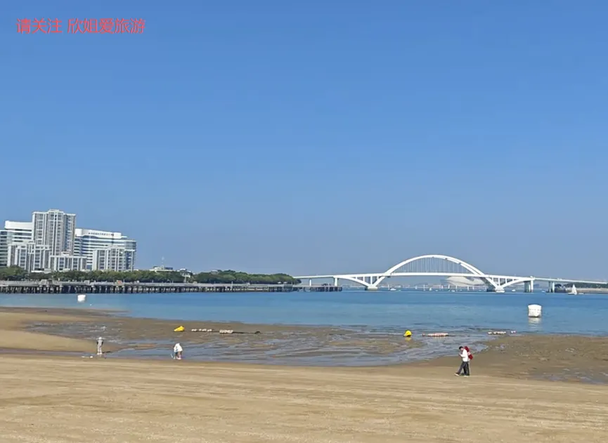 五缘湾沙滩,五缘湾重要组成部分,位于五缘湾大桥附近,与五缘湾湿地公园相连。厦门岛内小众沙滩,游客较少,环境清净,主打水上运动和休闲氛围。沙子细腻平坦,海水清澈见底,海滨浴场和水上运动场所。可享受阳光、沙滩、海浪,参与帆船、帆板、皮划艇、摩托艇等水上运动项目。绝佳赶海地点,退潮时沙滩上有花蛤、小螃蟹、贝壳等。提前查看厦门潮汐表,退潮时前来。周边还有五缘湾湿地公园、五缘湾游艇码头、五缘湾大桥等景点。