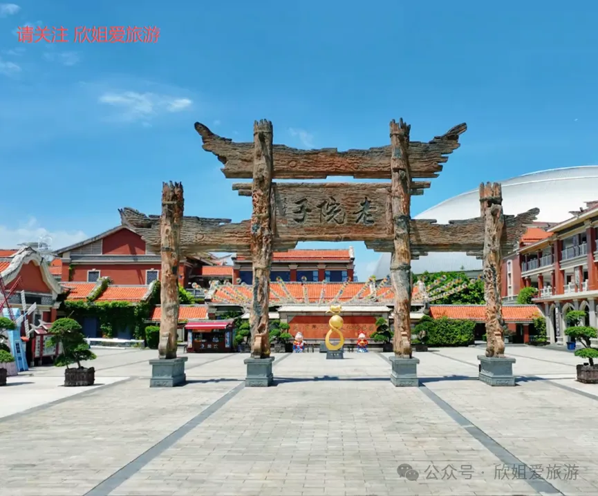 老院子景区,包括老院子民俗文化风情园、实景演艺《闽南传奇》秀和《海战风云》、企鹅童梦乐园、嗨翻天无动力亲子小镇、天空之城观光塔五部分。位于厦门市集美区后溪镇华夏路9号,以闽南文化为核心,融合民俗、建筑和海洋文化。老院子民俗文化风情园分为民俗文化区、妈祖文化区、南洋文化区、始祖文化区和餐饮购物区等五大区域。妈祖文化区,矗立“三面妈祖”动态音乐喷泉景观,妈祖神像随音乐从水中冉冉升起,灯光与喷泉交织。《闽南传奇》秀,超大型室内实景演艺秀,以闽南文化为主题。《海战风云》,大型户外实景演艺秀,以明朝抗倭为背景。还有企鹅童梦乐园、嗨翻天无动力亲子小镇、天空之城观光塔等景点。