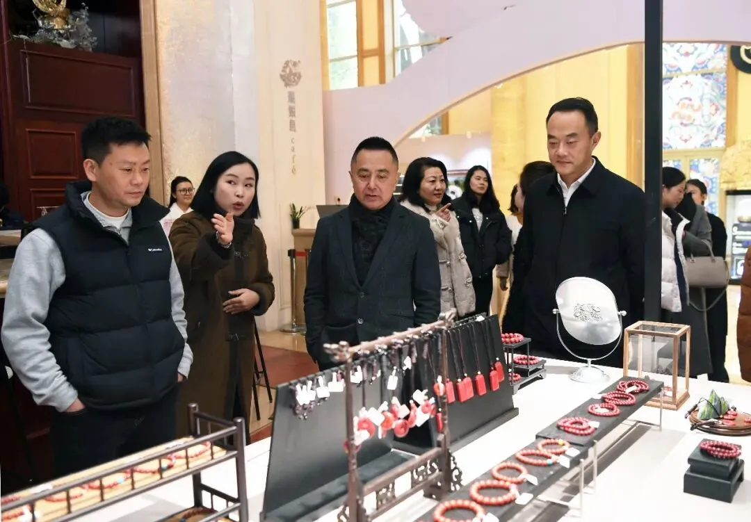 考察组沉浸式参观非遗展品、XR大空间、民族服饰博物馆等板块,深入了解场馆功能布局与文旅融合业态打造情况。在随后的座谈会上,双方明确三项合作重点:强化沟通联动,提供酒店宣传渠道、推荐合作旅行社;嫁接文旅活动,磋商1月23日在艺术中心举办市旅游协会年会;引入优质演艺资源,协助开展导游队伍培训。
