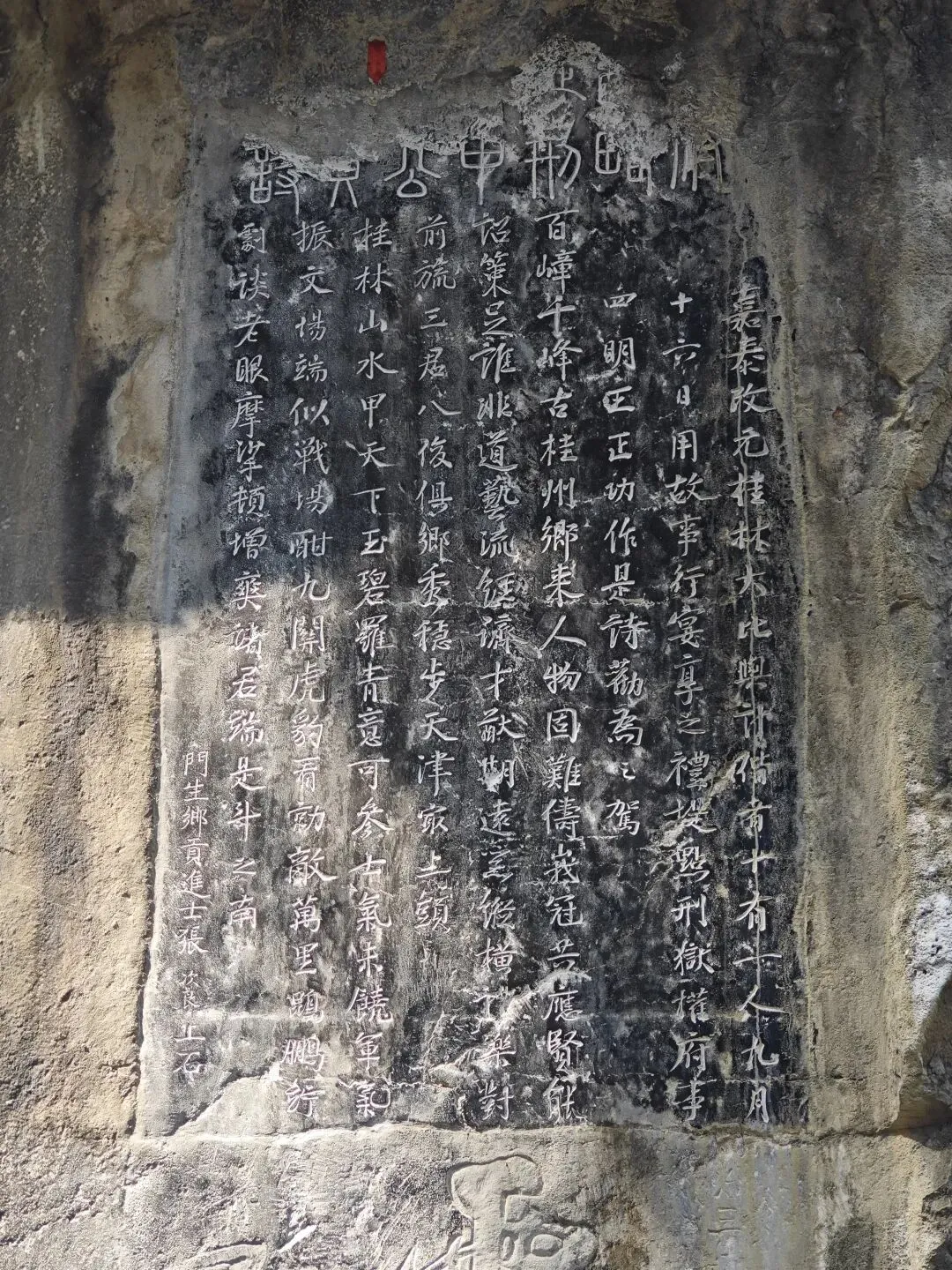 深入景区一隅,读书岩的静谧与厚重更令人沉醉。这处天然岩洞曾是靖江王的读书之所,岩壁上满是历代文人的题刻,笔力遒劲的字迹历经岁月冲刷,依旧清晰可辨。驻足细读,字里行间皆是对独秀峰的赞美、对桂林山水的咏叹,浓厚的文化气息扑面而来,让人忍不住放慢脚步,与历史来一场隔空对话。