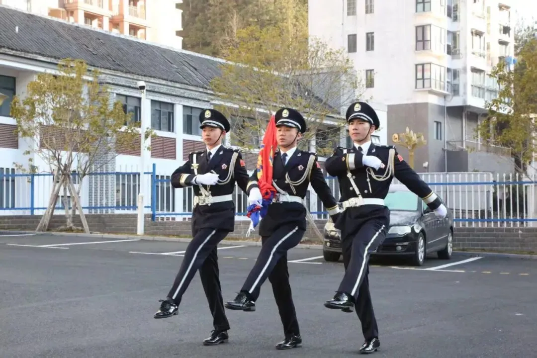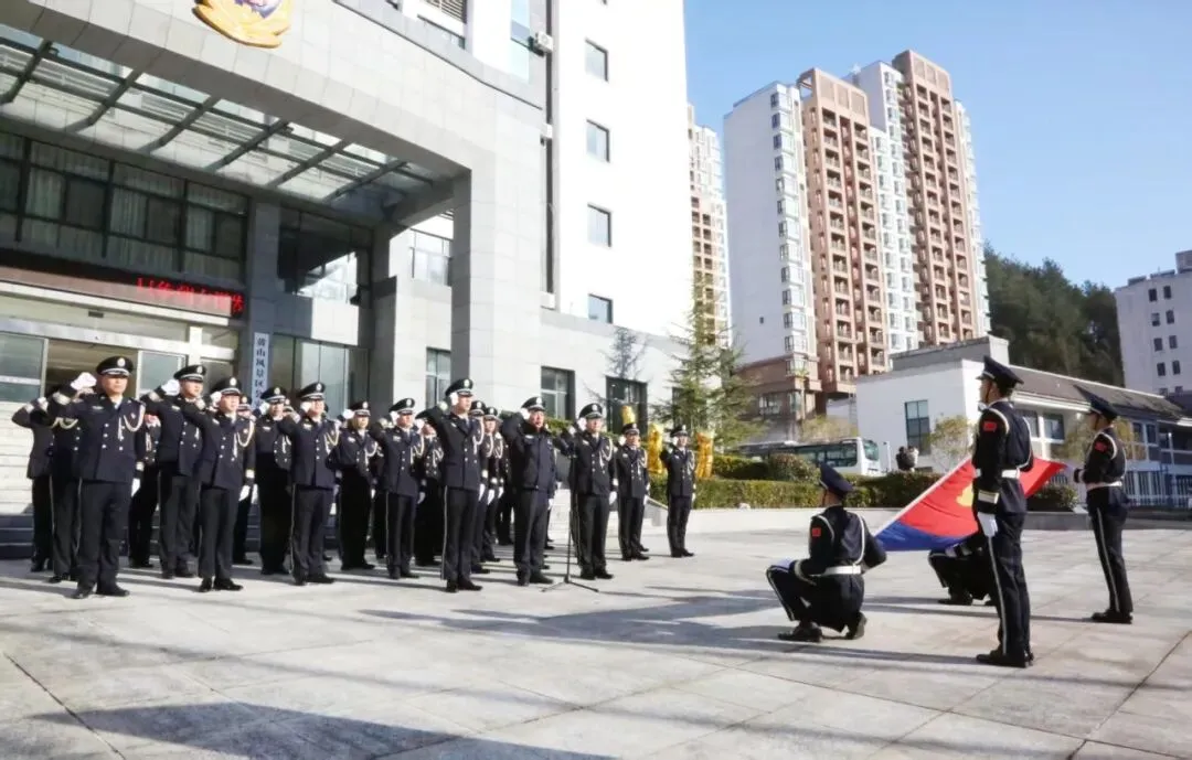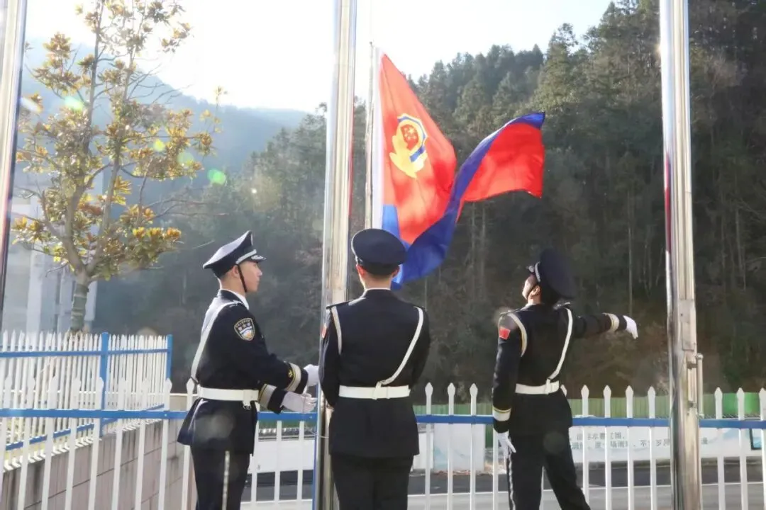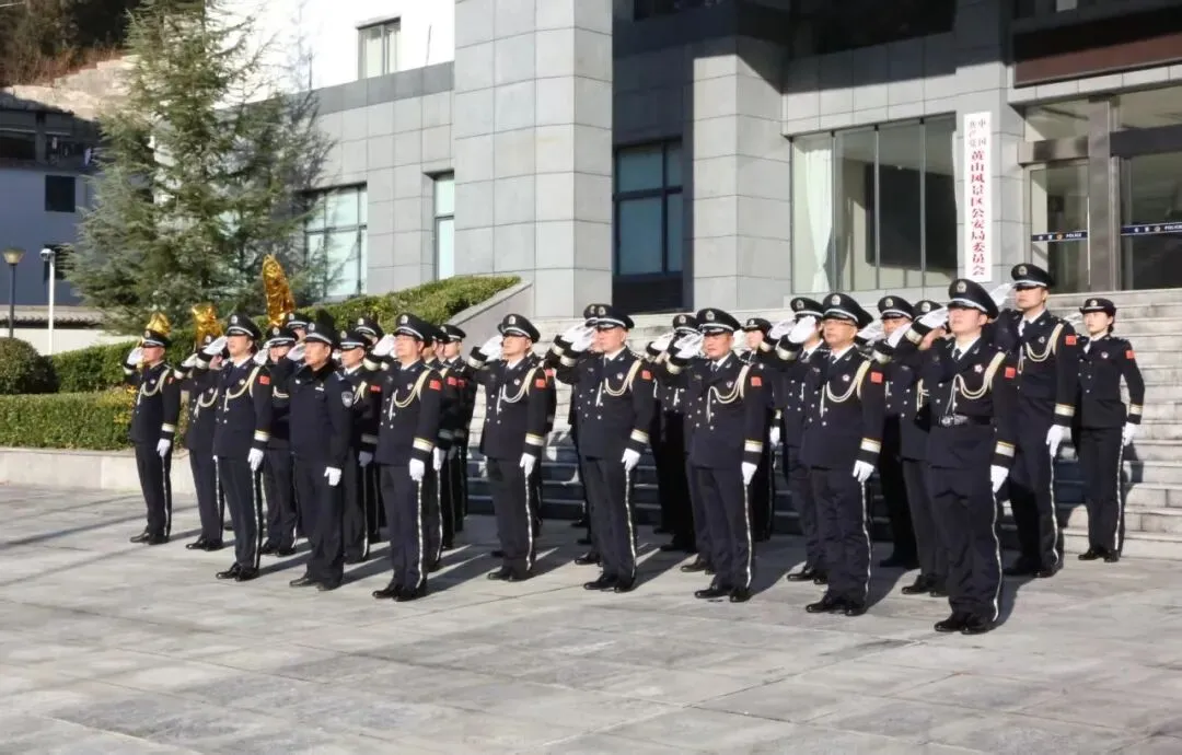 警旗猎猎,映照无悔担当;誓言铮铮,凝聚奋进力量。景区公安局民警身着警礼服整齐列队,庄严肃立参加升警旗仪式。伴随着雄壮的《中国人民警察警歌》,鲜艳的警旗冉冉升起,全体民辅警向警旗庄严敬礼,尽显对公安事业的无限忠诚与热爱。礼毕后,全体民警高举右拳,重温《公安机关人民警察誓词》,铿锵有力的誓言响彻广场,彰显出景区公安不忘初心、砥砺前行的坚定决心。