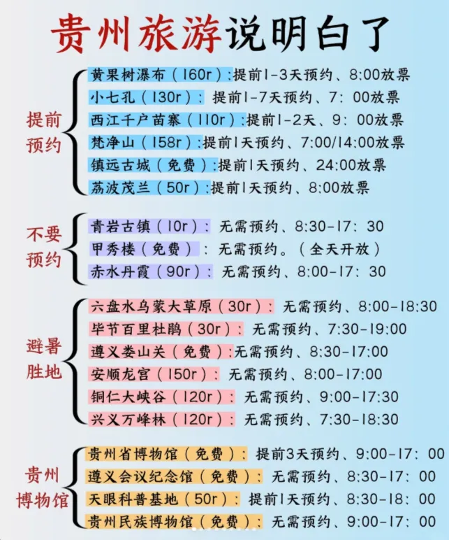 这份整合了官方最新政策、必约景点清单、保姆级预约流程和避坑指南的推文,赶紧收藏转发,让你的贵州之旅顺顺利利!