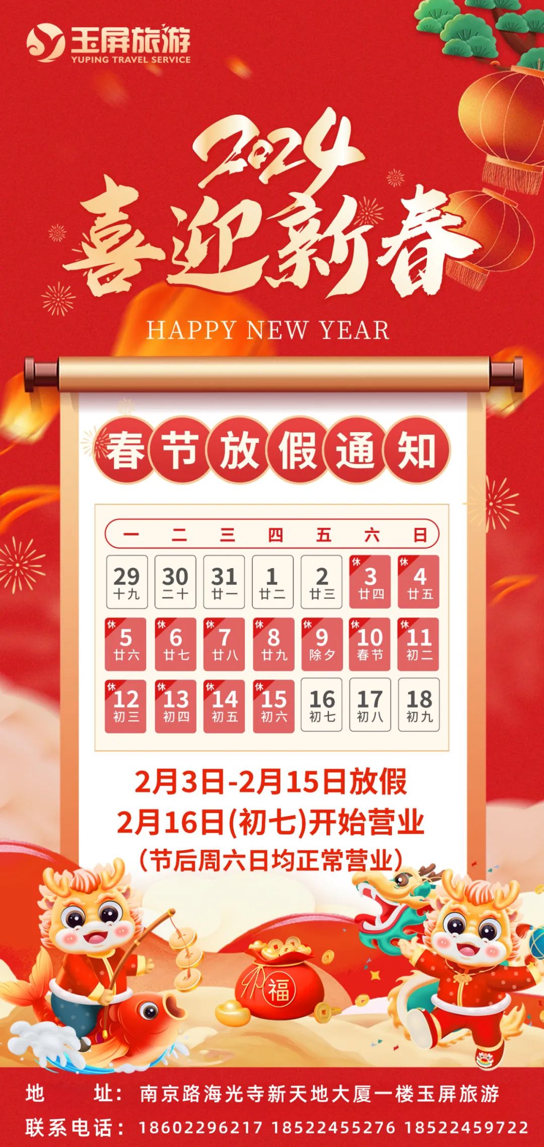 您现在的位置是:首页 > 国内旅游目的推荐 > 正文 国内旅游目的推荐 天津玉屏旅游|春节放假通知! admin2024年02月01日 08:53:51国内旅游目的推荐197 点击上方“蓝字”关注我们吧! 转载请说明来源于"旅荐网",部分内容转载自网络,如有侵权请联系qlwl@foxmail.com删除 本文地址:https://www.15386.cn/post/8002.html 上一篇 泰国旅游新年强势复苏,中国游客领跑国际访泰潮 下一篇 【古滇国际旅游】2月11-15日(春节假期)跟着北京人玩北京,过新年,逛庙会 相关文章 扬州旅游攻略: 乌镇旅游攻略 EDSA荣登2026福布斯旅游指南星级榜单 关于《研学旅游指导师服务规范》等2项团体标准公开征求意见的通知 兰亭双花齐绽!“兰亭十里春”全域游玩攻略请收好 【互动素材】北京颐和园旅游攻略 格鲁吉亚!6个神仙景点附拍照攻略 张家口保姆级旅游攻略,去张家口前必看! 3-5月东京旅游攻略丨樱你而来,遇见东京 印尼旅行全攻略|16个景点真实测评,3-5月去直接抄作业! 发表评论 取消回复 评论列表 这篇文章还没有收到评论,赶紧来抢沙发吧~