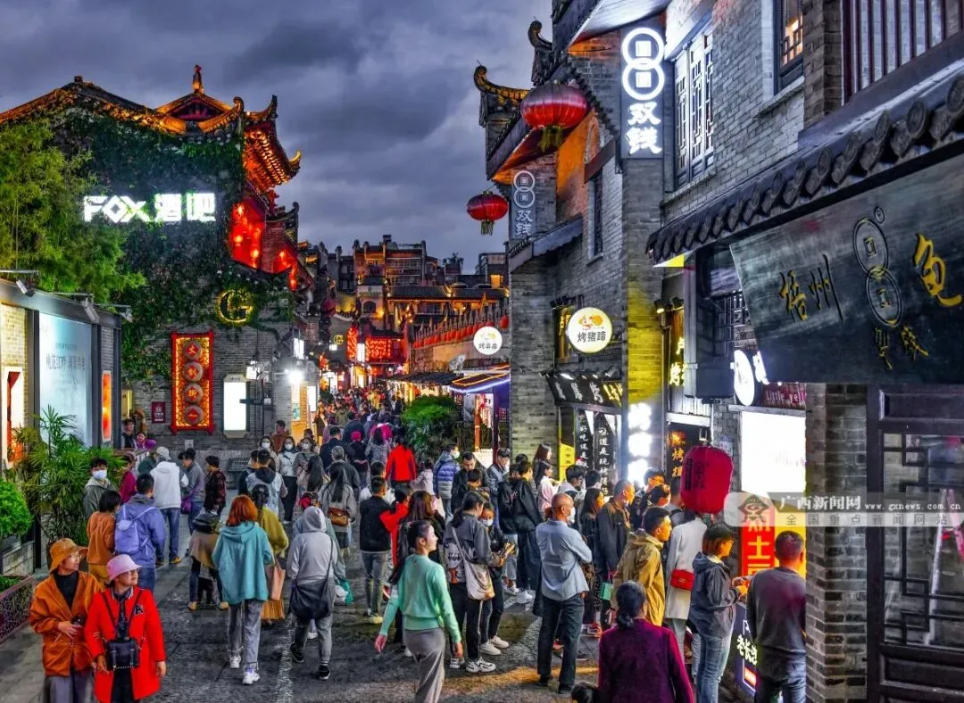 春节的广西更有别样滋味:嗦一碗热辣的螺蛳粉,看壮族同胞的绣球抛起祝福,古村的红灯笼映着笑脸,把团圆的喜悦融进山水里。