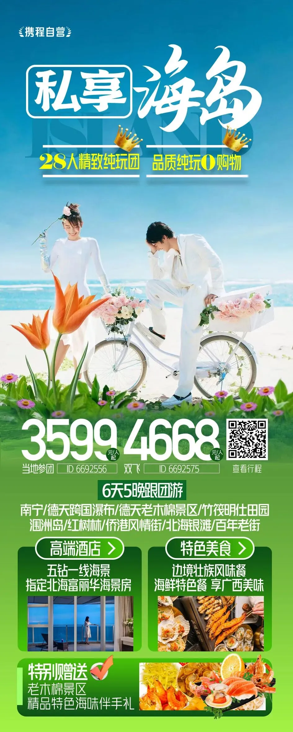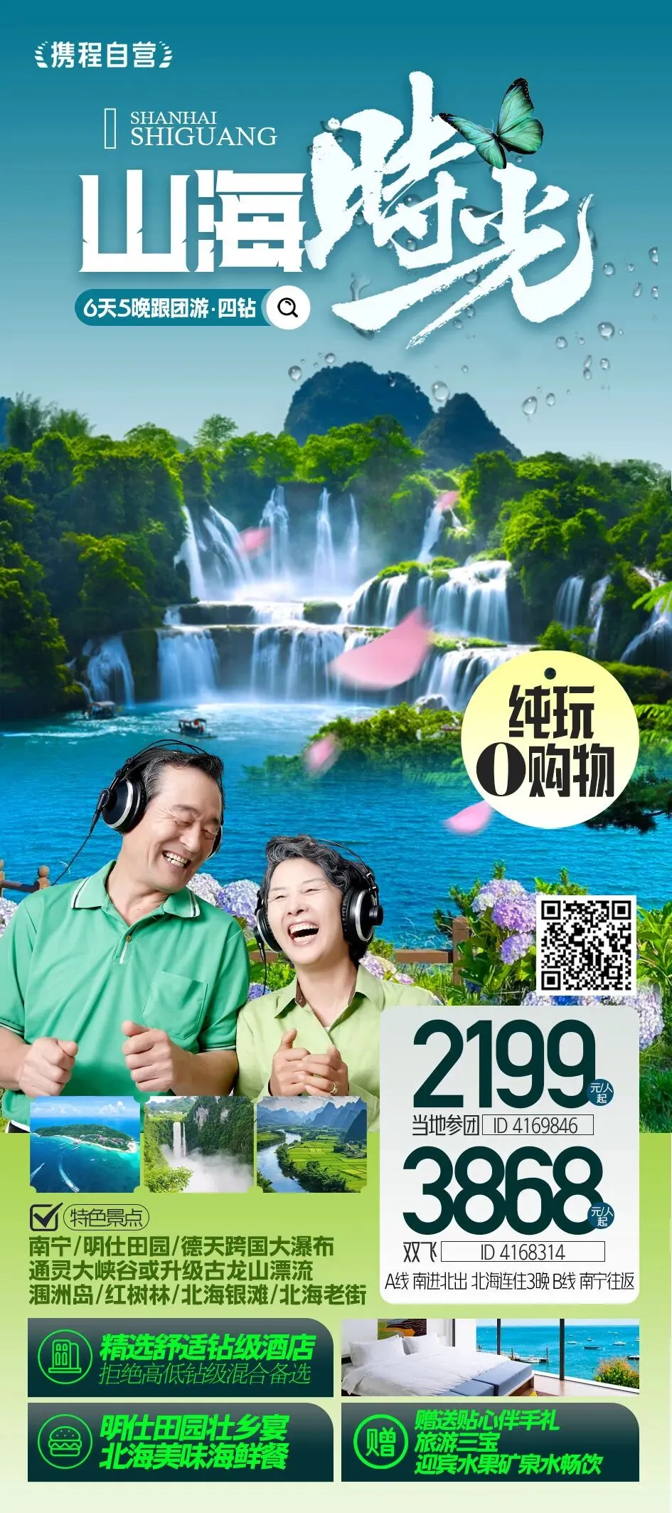 #广西南宁+德天瀑布+北海+涠洲岛6日5晚跟团游(5钻)