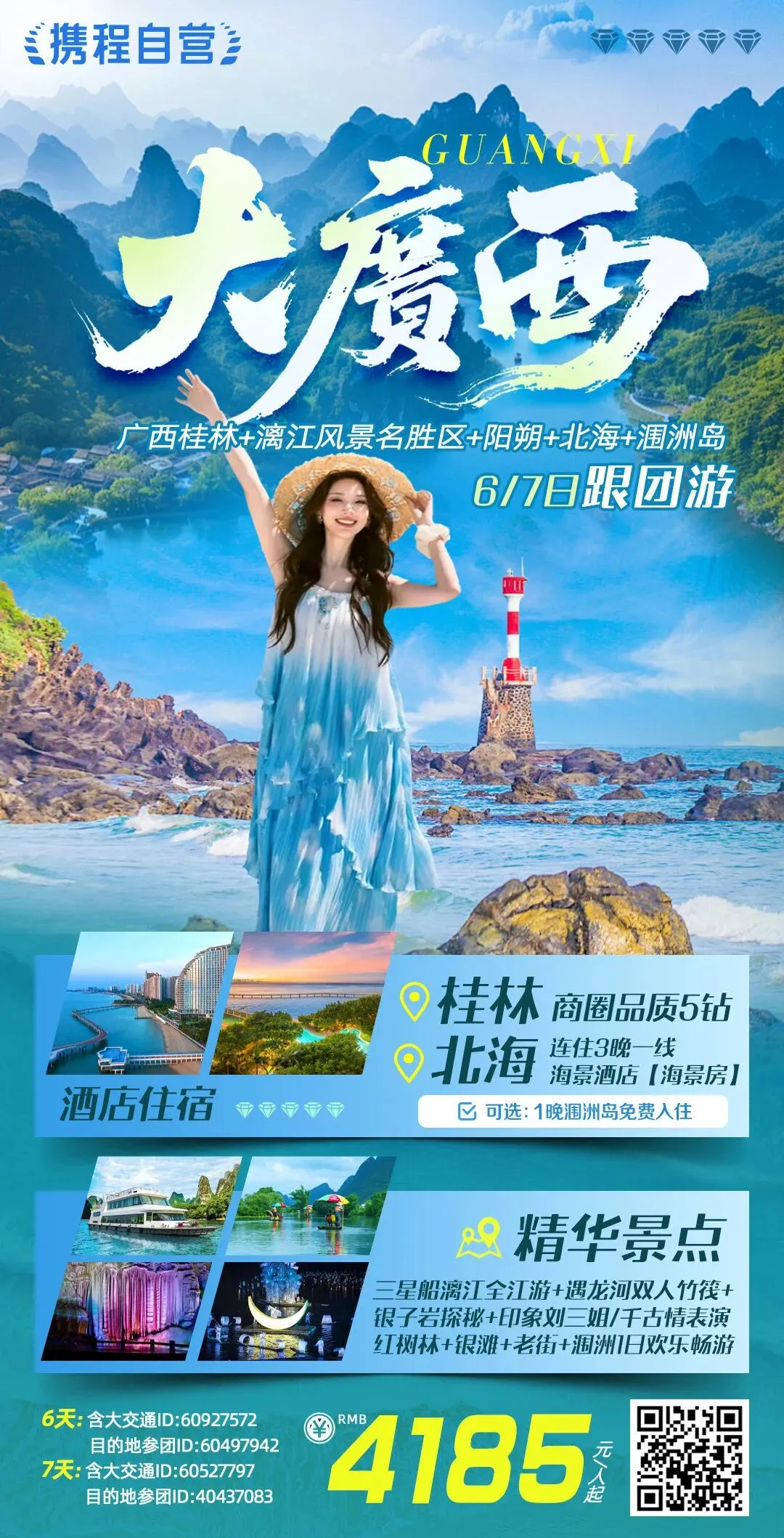[庆祝]精华景点:三星船漓江全江游+遇龙河双人竹筏+银子岩探秘+印象刘三姐/千古情表演/红树林/银滩/老街/涠洲1日欢乐畅游